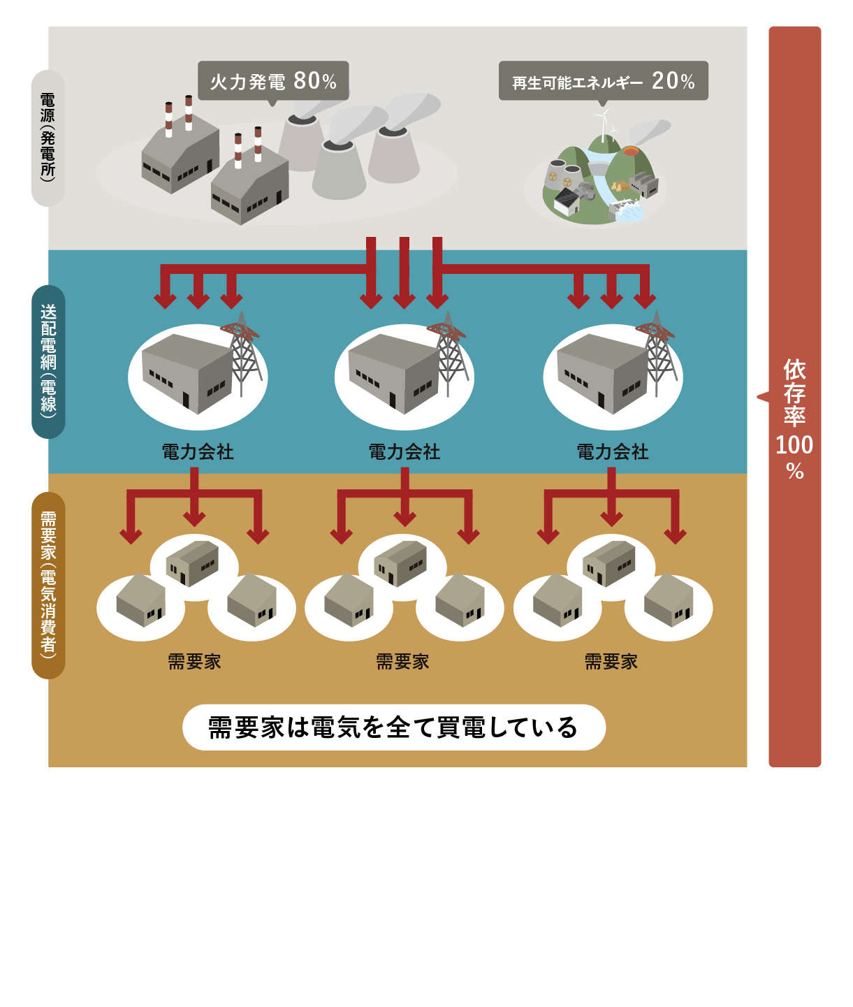 現在の日本の電源システムは、電力系統に依存した「依存・集約型電源システム」。